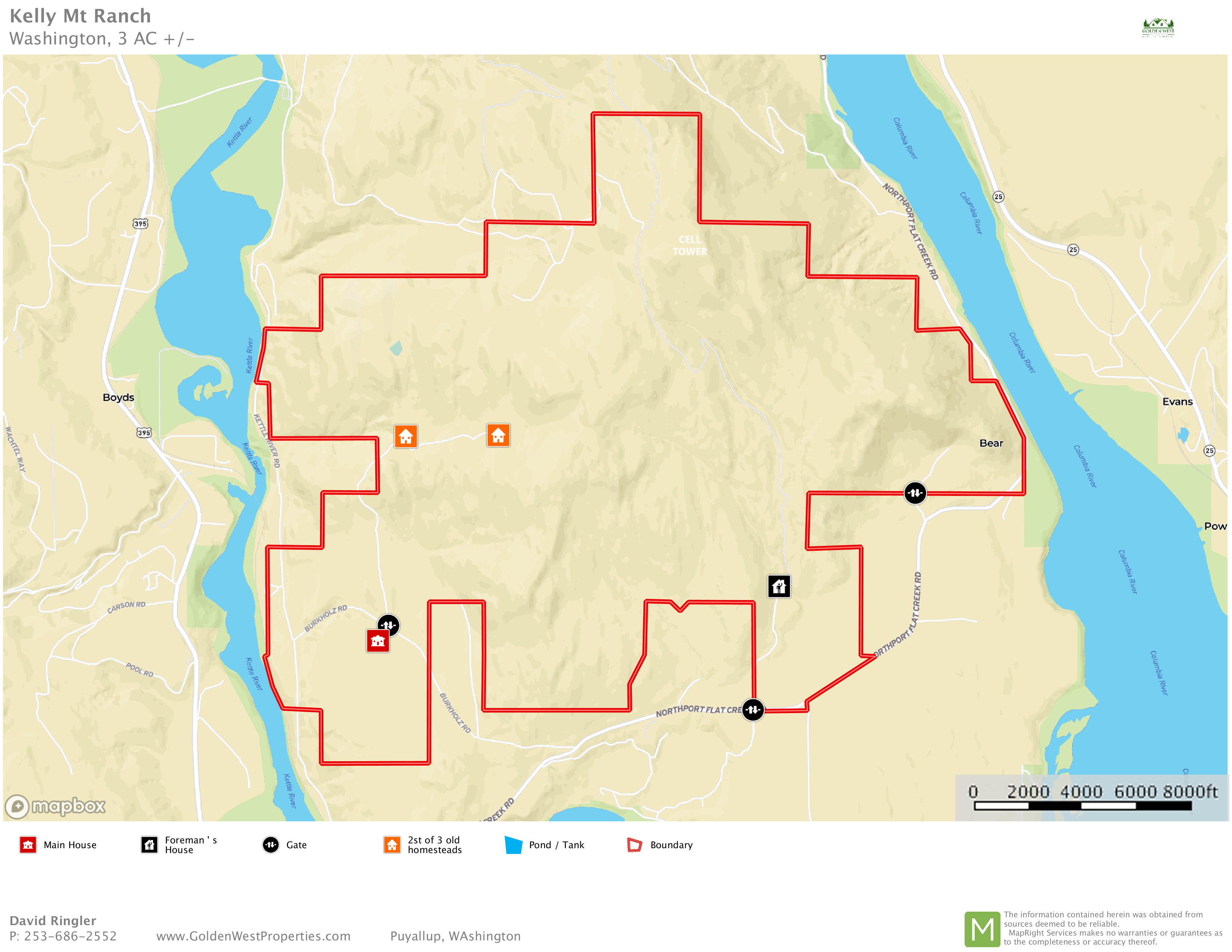 On a clear day you can see forever from this 3,915 acre ranch nestled between the Kettle River and Lake Roosevelt., just 5 miles from Kettle Falls. Ranch boasts 32 parcels, aprx 160 ac in hay, income from cell tower lease, trophy deer, elk, bear, & most game birds, 4 homesteads from the 1800’s, a farm house, foreman’s house, barn, springs, plus a large pond. Property fronts on 3 county roads. Historical tales report 2 mines, contact your broker for a private showing to see if you can find them.